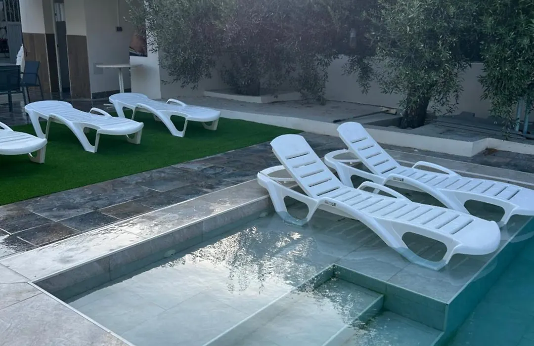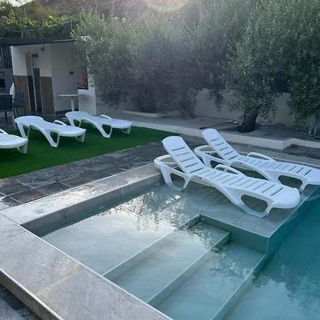 Villa Karma Berja med 2 sovrum har en parkering och en terrass med utsikt över poolen.